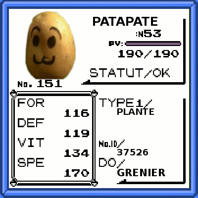 Je veux patapate, le pokémon pomme de terre du JDG <3
