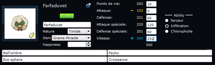 J'ai capturé 5-6 Farfuret , aucune nature qui avantage l'attaque ou la vitesse (j'ai Bizarre , Malpoli , deux fois Relax et Brave)...