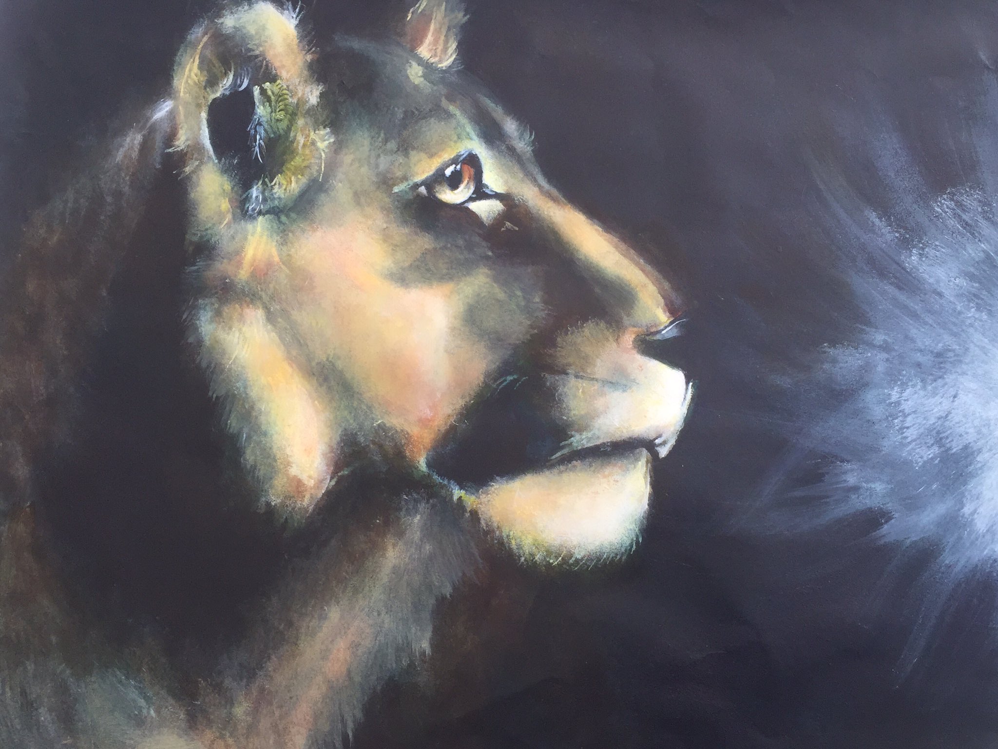 ! J'ai fini la Lionne que j'avais publié la première fois et j'ai fais un tableau en m'inspirant de rembrandt :