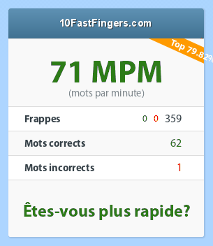 J'ai retrouvé mon 93 mpm, et aujourd'hui mon premier a été un 91 mpm (sans faute).