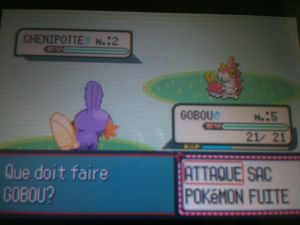 Nous étions le Mercredi 5 Septembre, et je suis rentré en cours le 4 après-midi. Je shassais pour une dernière fois de l'année, sachant pertinemment que j'aurais moins le temps par la suite. J'étais sur Skype avec pas mal de monde : Luc4973, Blues, Hydro, Mc (il été parti jouer), Grahy (j'te compte quand même), Airsun et toute la compagnie. Je discutais avec Luc4973 et Hydro, parce qu'il sont, après Blues et moi, les plus intelligents du groupe. Hydro venait de trouver son Corayon (trouvé en 1 222 rencontres... Corayon est le numéro 222 du Pokédex !) et son Sabelette (un doublé !), ses 28 et 29èmes chromatiques. Je faisais des rencontres machinalement, et souvent, chaque rencontre prenait deux minutes, le temps que j'écrive sur Skype, ou que je lise, etc... Je m'étais relancer dans la shasse intensivement, étant pressé de commencer d'autres shasses. Vu le chiffre étrange d'Hydro pour son Corayon (cf. plus haut), je pensais qu'il serait presque ironique que je trouve Gringolem à la 1 622è rencontres (il est le nº622 du Pokédex national). Bref, nous discutions d'un peu de tout. Je décidai alors de baisser les yeux sur l'écran de ma console, me rendant compte qu'un rencontre s'était engagée il y a longtemps, peut être deux ou trois minutes, mais que je n'avais toujours pas regarder... Et là : SHINY !!! Shiny, shiny, shiny, shiny, shiny !!! Impossible d'écrire autre chose que "SHINY !" sur Skype ! Sur toute les conversation : "SHINY !". Les quelques minutes de surprise passées, je me calmai, et me disais qu'il fallait commencer la vidéo. Je lançai les paris natures sur Skype (à retrouver dans ma vidéo, cf. plus bas). Je précisai que j'utilisais un Synchroniseur Rigide. La capture. Il était N.30. Je savais très bien (pour l'avoir calculer) que j'avais beaucoup de chance de la capturer dans une Sombre Ball, même avec ses PV au max et sans problème de statut. Mais, j'avais quand même prévu un Queulorior fauc-cheur. Sauf que je switchai parce qu'il y avait Abra, mon Synchroniseur, et son attaque Dynamopoing me laissa seulement 3 PV, et me rendis confus. Manque de chance, je me blessai dans ma confusion. Une lueur de panique brilla un instant dans mes yeux. Mais j'envoyai tout de suite mon Incisache shiny. Je lançai à sa suite un Sombre Ball. Hop, capturé du premier lancé ! Le surnom. Je le nomme Emet, car c'est ce qu'on écrivais sur le front des golems pour leur insuffler la vie. Je sauvegarde, avant de voir la nature, et les stats. J'ouvrais ensuite le menu Pokémon, et regardai la nature. Il est Rigide. Yes, Synchro avait fonctionné ! Mais il a Maladresse... (Visionnez ma vidéo pour savoir qui a gagner le paris !). Je sauvegarde à nouveau. Je fis une rencontre. Mince, j'ai oublié de mettre Emet en première position. Je le fis. Et je refis une rencontre. Les étoiles. Wahou ! Elles sont magnifiques, vraiment ! J'en fais d'autre, je veux les revoir ! Il est très beau, ma-gni-fique !!
