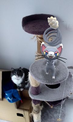 - En 3ème, un Chaglam sur un arbre à chat, en compagnie du matou de quent1du14 !