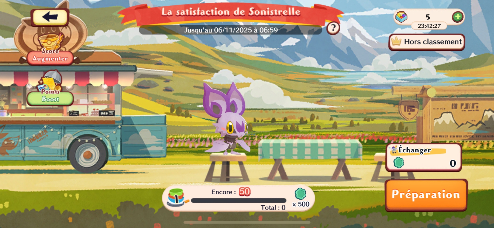 Nouvel Évènement aventure ventre satisfait avec Sonistrelle, disponible jusqu'au 6 novembre.