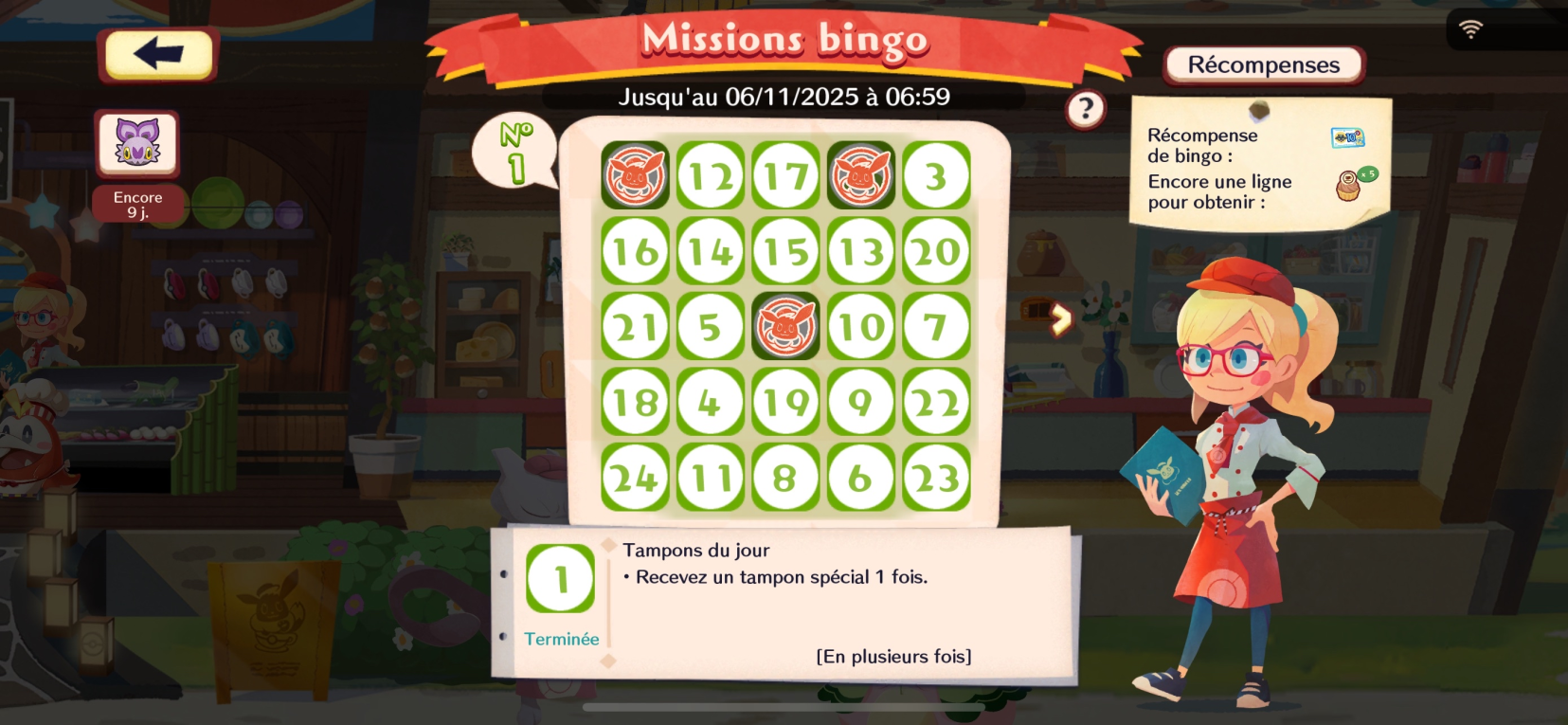 Un tout nouveau défi de missions bingo est disponible dans votre Café jusqu'au 6 novembre. Il vous permettra notamment d'obtenir des glands dorés si vous le finissez à temps.