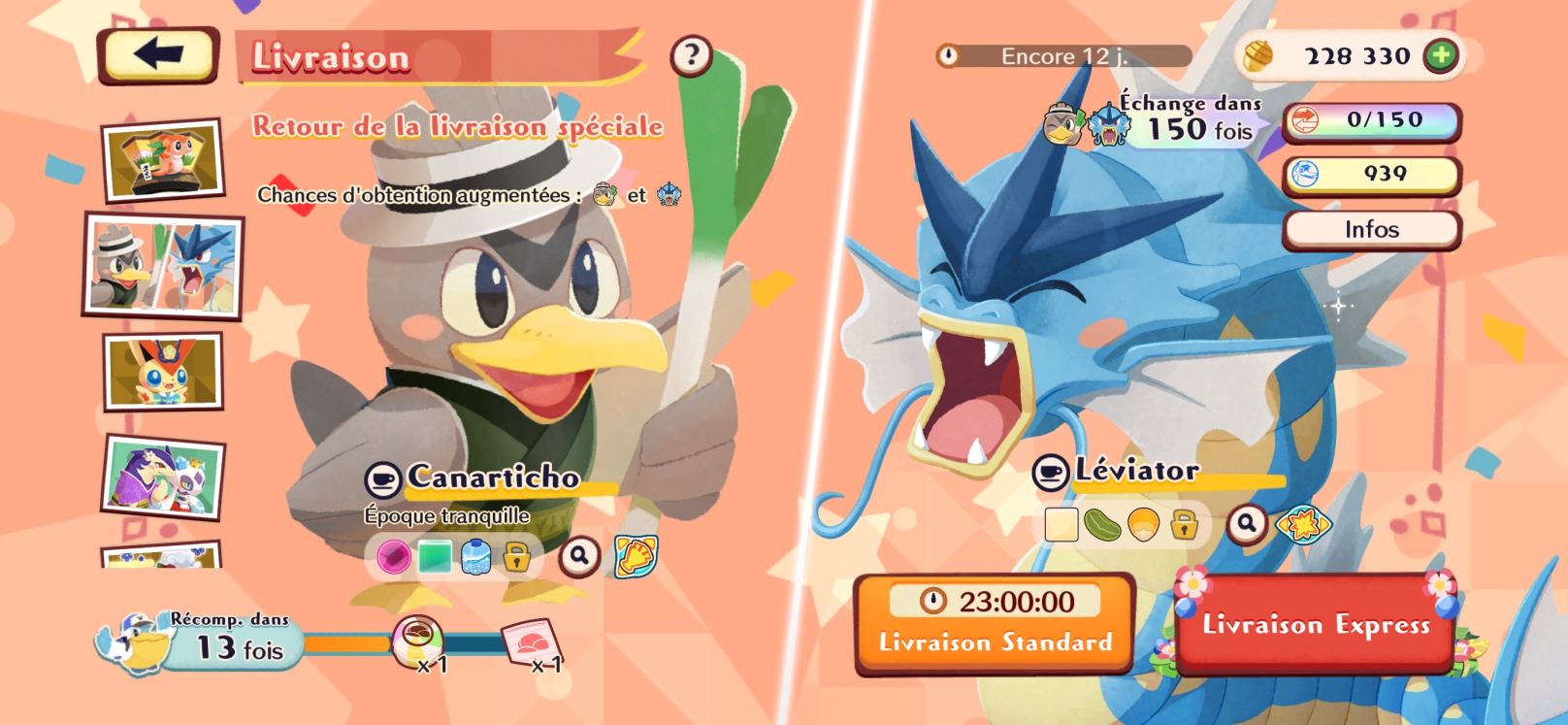 Canarticho (Époque tranquille) et Léviator seront de nouveau en vedette via la Livraison, du 21 janvier au 3 février.