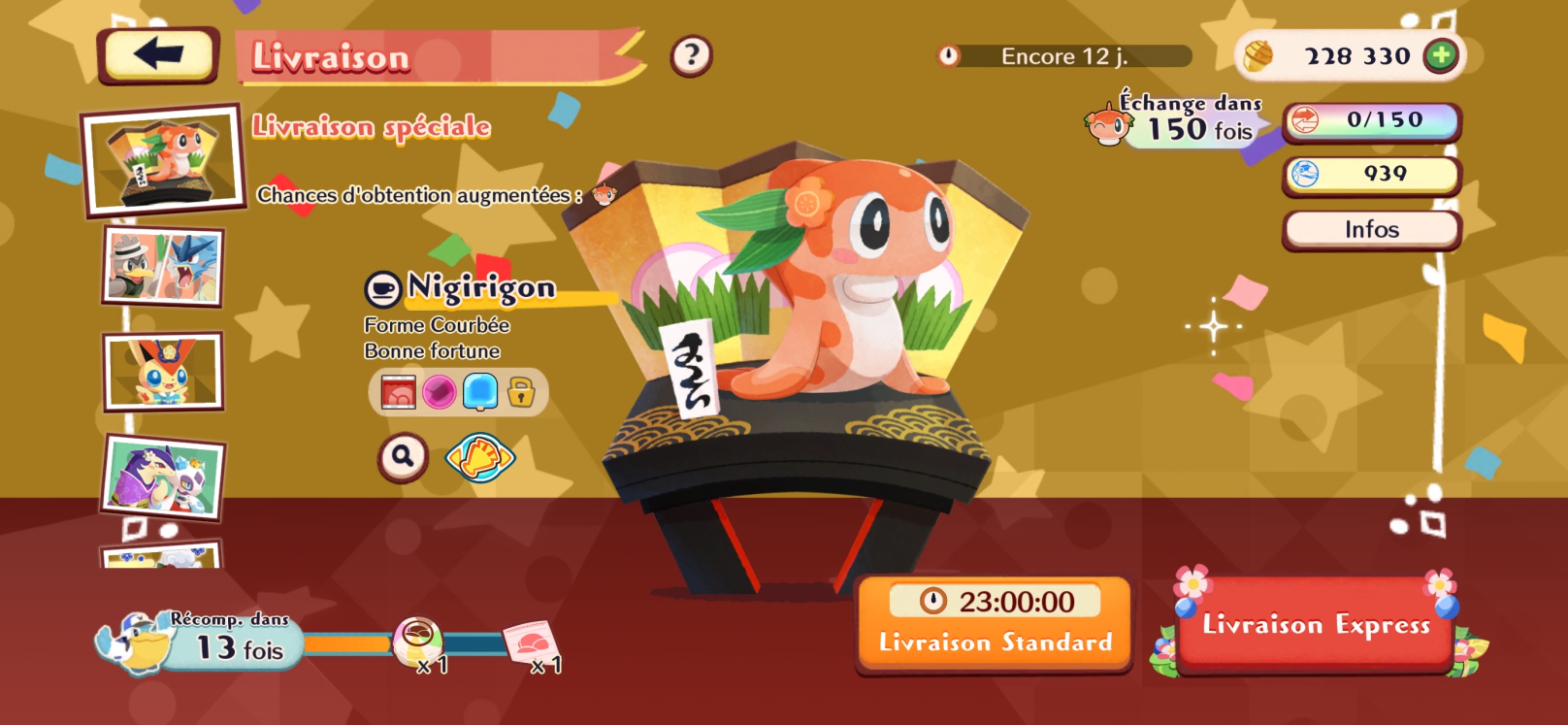 Nigirigon (Bonne fortune) sera en vedette via la Livraison, du 21 janvier au 3 février.
