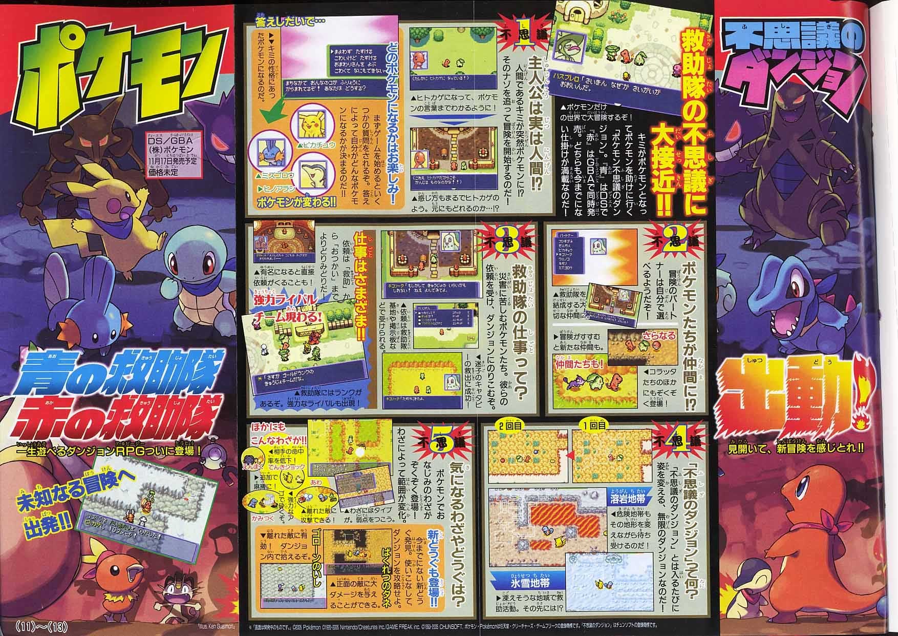 On y découvre de nouvelles images pour les deux jeux prévus dans les mois qui viennent au Japon : Pokémon Puzzle (DS) et Pokémon Mysterious Dungeon version Bleue (DS) et Rouge (GBA).