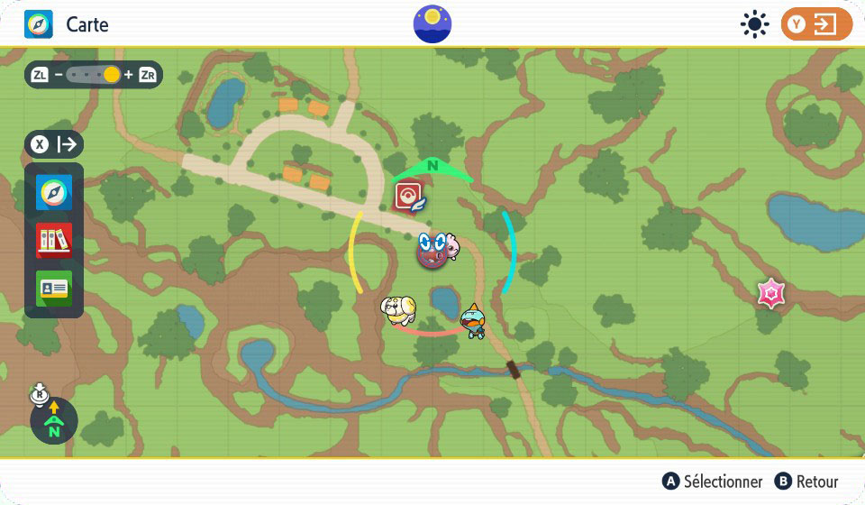 Si rien n'est précisé, c'est la journée dans Soleil et Ultra-Soleil et la nuit dans Lune et Ultra-Lune qui sont mis par défaut.| Jeu | Méthode | Localisation | Pourcentage |