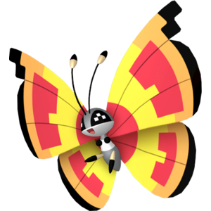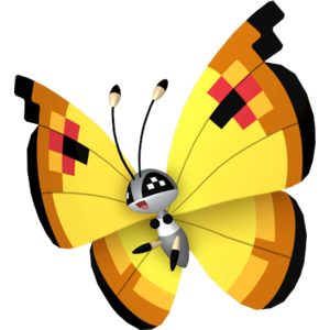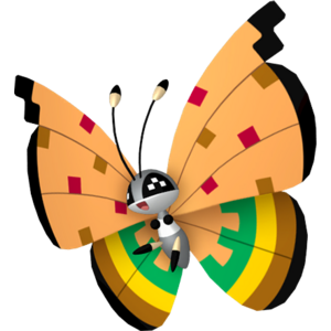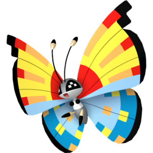 Il est originaire de terres fleuries. En combat, ses ailes disséminent des écailles empoisonnées aux couleurs vives.