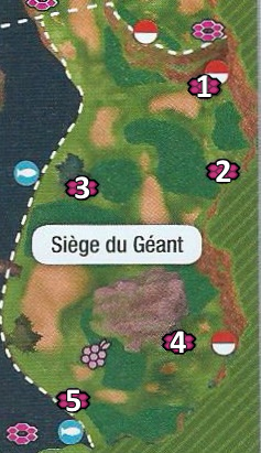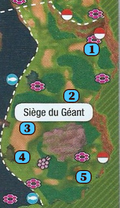 | Racinénergie | Au Sud, près de parterres d'herbe Au Sud, près de buissons À l'Est du pont Au Nord, près de buissons Près d'un buisson, à côté d'un antre sur la falaise | |