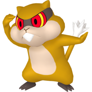 Il attaque en crachant les graines des Baies qu'il accumule dans ses bajoues. S'il voit un ennemi, il dresse la queue.