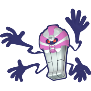 Il prend l'apparence d'un beau cercueil pour punir les pilleurs de tombes. Son corps est recouvert d'or pur.