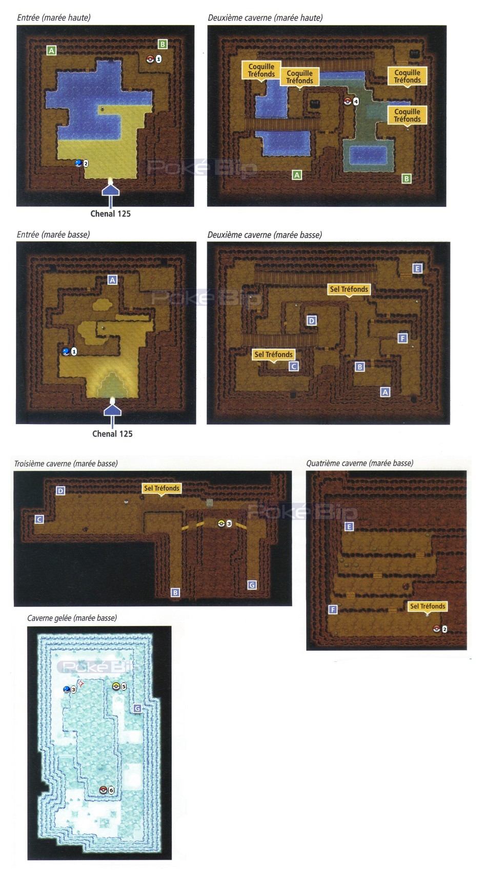 Pokémon trouvables à Grotte Tréfonds (sous-sol glacé, marée basse)
