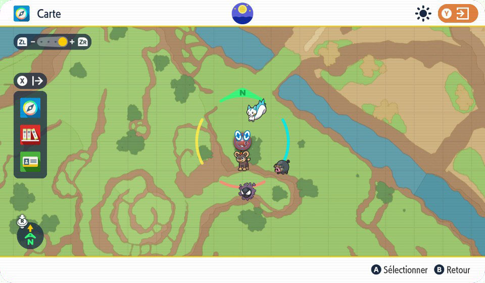 Si rien n'est précisé, c'est la journée qui est mise par défaut, et non pas le matin ou la nuit.Note : au Marais Bouchebée, des Pachirisu réapparaîtront si vous avez capturé ou vaincu les précédents et qu'un changement de météo ou du moment de la journée s'effectue.