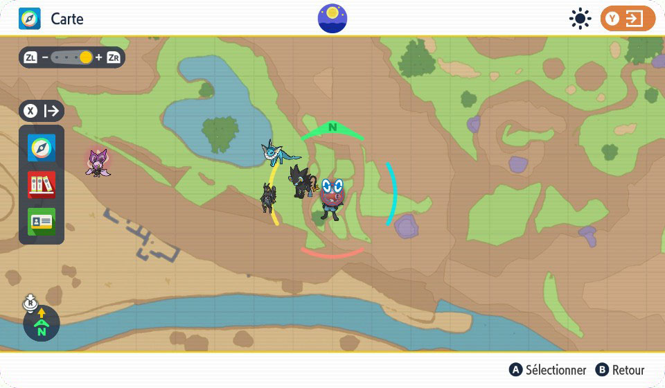 Si rien n'est précisé, c'est la journée dans Soleil et Ultra-Soleil et la nuit dans Lune et Ultra-Lune qui sont mis par défaut.| Jeu | Méthode | Localisation | Pourcentage |