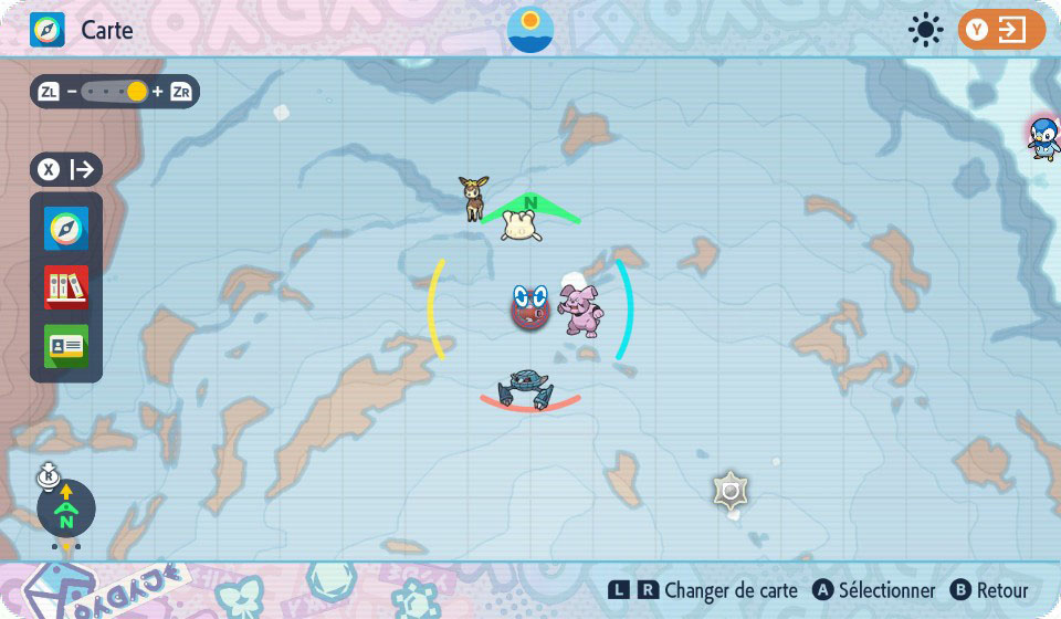 Si rien n'est précisé, c'est la journée dans Soleil et Ultra-Soleil et la nuit dans Lune et Ultra-Lune qui sont mis par défaut.| Jeu | Méthode | Localisation | Pourcentage |
