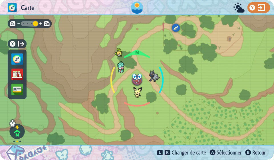 | Reset | 3 lieux possibles Forêt FlexionPar temps Clair, Nuageux, Pluvieux et Orageux Lande BoldairPar temps Orageux seulement Plaine SalutationPar temps Orageux seulement | 100% | |