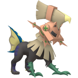 Ce Pokémon créé de toutes pièces porte un masque qui contient sa puissance et l’empêche de perdre le contrôle et de tout détruire.