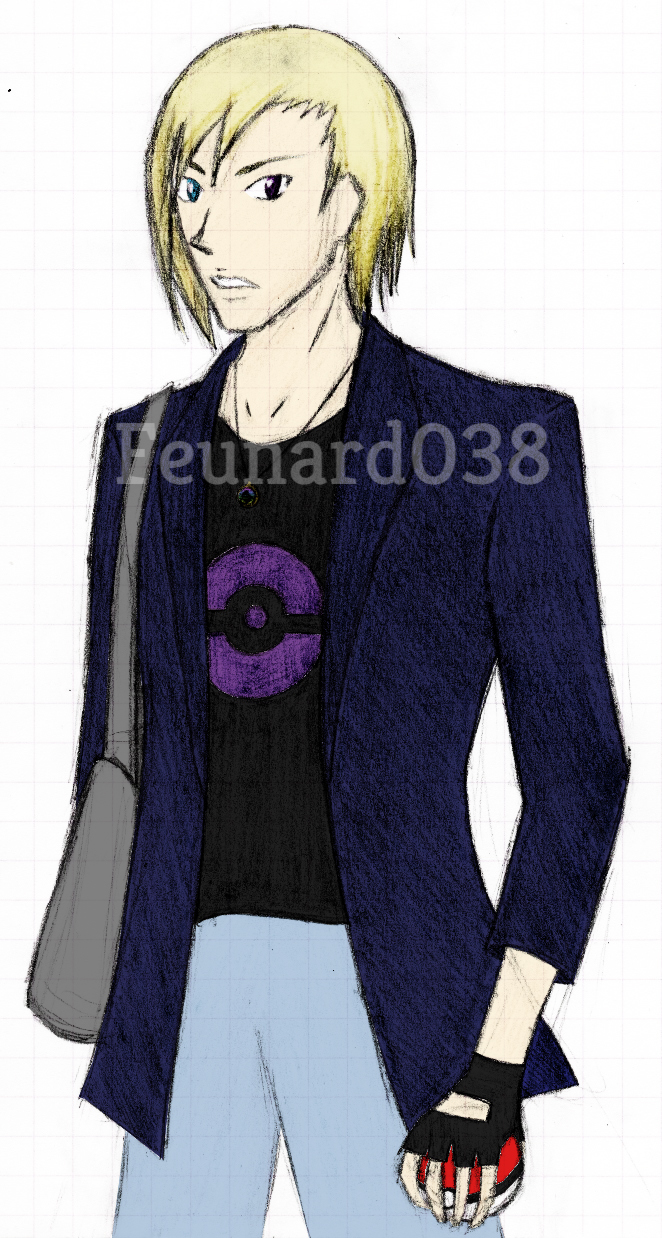 Voir l'image en grandHagane, dresseur de 22 ans, 1m72, 60kg, yeux vairons (gauche violet, droit bleu, au cas où on verrait pas bien sur l'illu), son pokémon de prédilection est un Terhal shiny (pour l'instant ^^), ses pokémons préférés sont Démolosse et Scalproie, ses types préférés sont les types feu, acier et ténèbres, mais comme son but est de devenir fort (pas forcément de faire les arènes et tout, juste être le meilleur, il se moque des titres), il utilise tous types de pokémons.