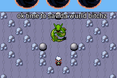 Je suis le seul à trouver ça chelou que Groudon se réveille avec l'Orbe Bleu ? Ça se trouve il s'est planté et c'est pour ça qu'il a pas pu le contrôler hein. Et au passage pourquoi la Team Magma qui est arrivée en première au Mont Mémoria n'a pas volé les deux orbes ? Je sais pas, juste histoire de faire chier la Team Aqua ? Enfin je vais trop loin ce ne sont que des tas de pixels après tout :^