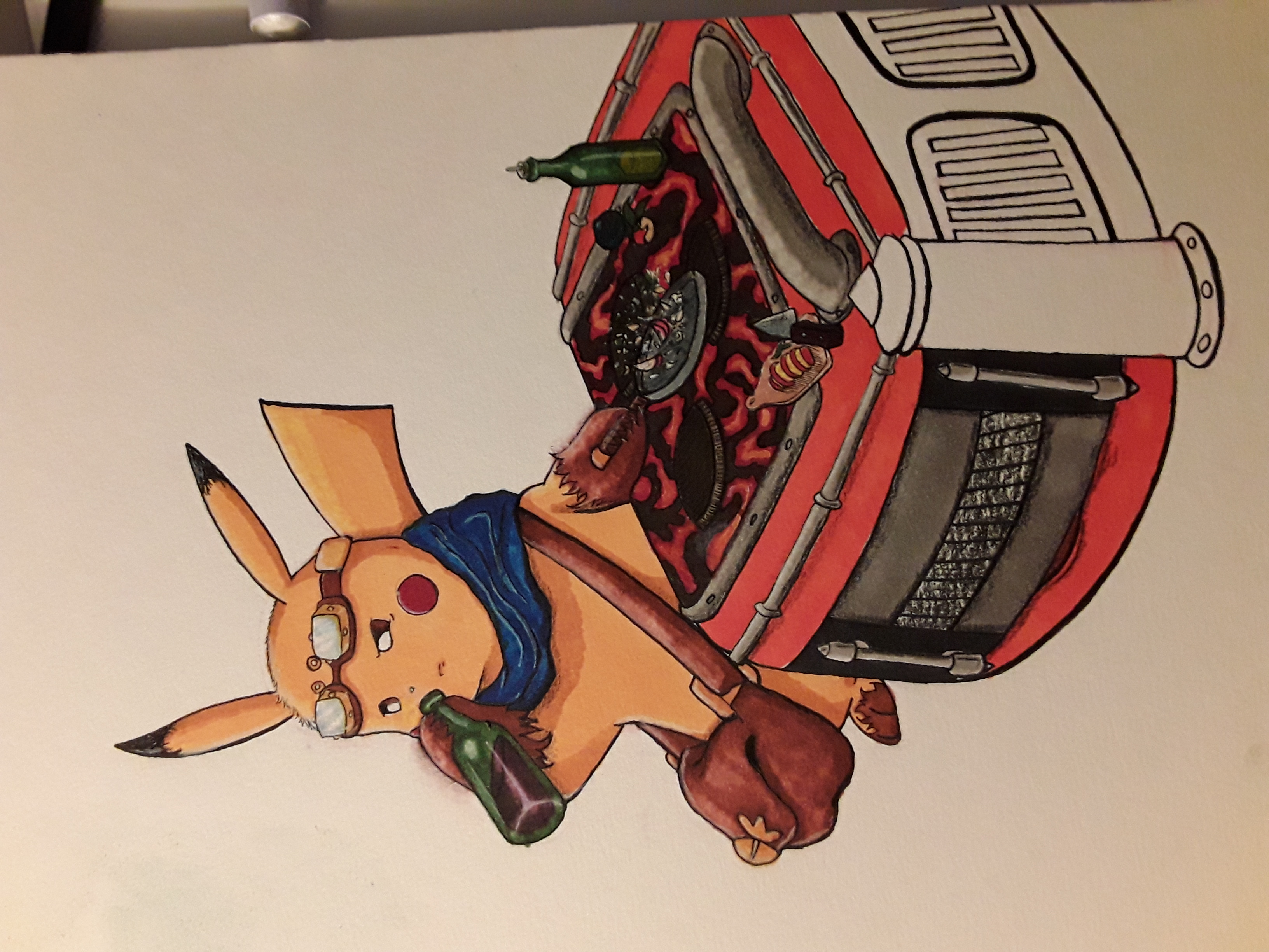Pour clore ce petit billet et pour prouver que je ne passe pas mon temps à ne rien faire (du moins pas totalement), deux dessins de votre cher Keios : le premier aux fourneaux (car oui, c'est un autre de ses dons) et, oh tiens : en uniforme de soldat !