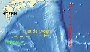 Et à l’Est, barrant le paysage comme quelque balafre au flanc du globe, se trouvait la Fosse d’Izu-Ogasawara. Un prolongement vers le Nord de la célèbre Fosse des Mariannes, descendant presque à une dizaine de kilomètres sous la surface. Si Kyogre devait être à son aise quelque part avec sa taille gigantesque, c’était là. Et il fonçait droit dessus.