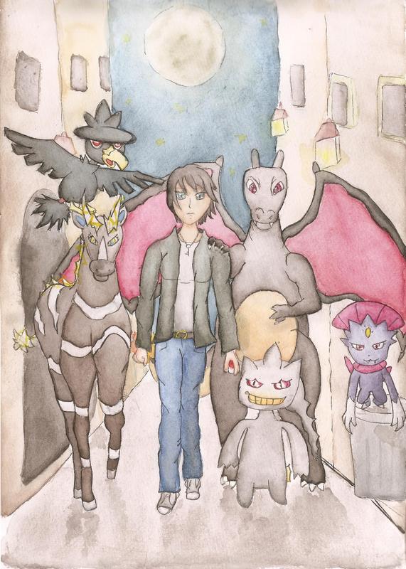 Bref, tout ce blabla pour vous présenter mon dessin, plus petit format que la dernière fois, toujours encre de chine pour les contours (j'ai essayé de faire les Pokémon avec des contours plus épais), et aquarelle pour la couleur ^^ (ça n'a d'ailleurs pas été évident de faire des couleurs vives et joyeux parfois... Faut que je réinvestisse dans de l'aquarelle...)