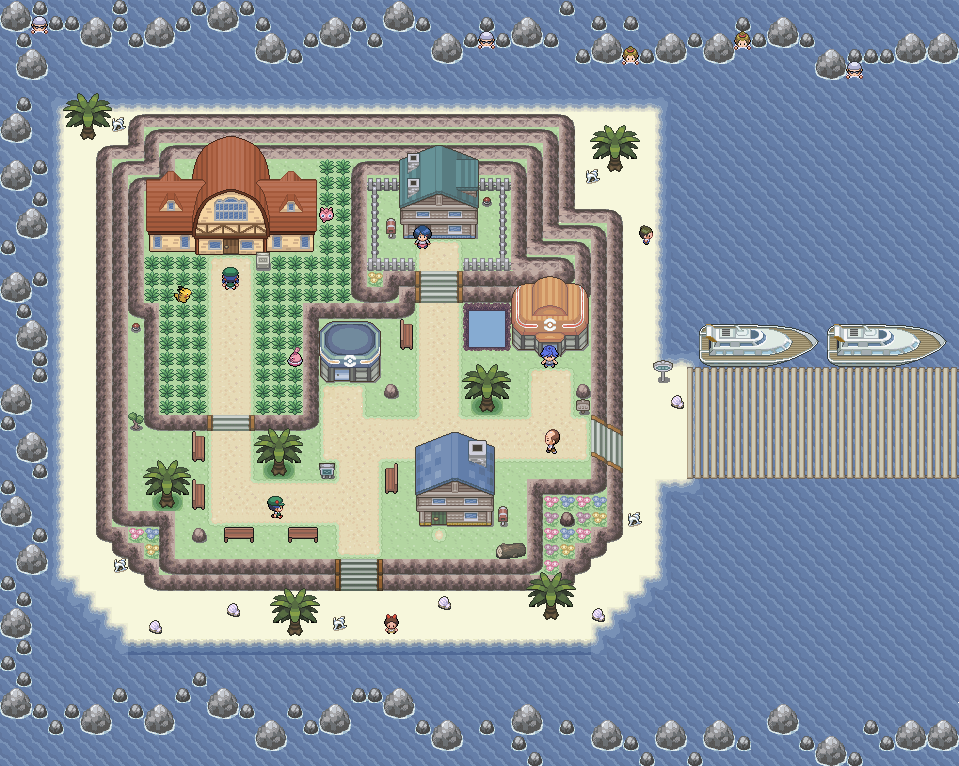 une boutique, un centre pokemon, une pokéball etc....