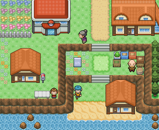 Alors voici une restauration d'Augustia ! Je remercie Toukitouki l'éclipse qui m'a passer ses sprites ! Augustia est la première grande ville des iles des Delfinos , le pont donne accès à la route 2 ou le pont balnéaire et la route à droites mène au phare des embruns que l'on découvrira plus tard ;slogan d'Augustia : "Ville des embruns".