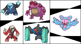 3eme épreuve du concours Pixel Art de PokemonTrash. -Jodokrak aux couleurs de Karaclée,et/ou l'inverse. -Crapustule aux couleurs de Bétochef,et/ou l'inverse. -Faire de Symbios un type Eau/Psy sans fusion.