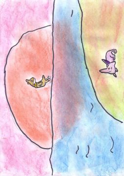 le dessin représente 4 personnages:une fille dont le pouvoir est celui dela psy, un homme des glacier, un mineur,un triton.