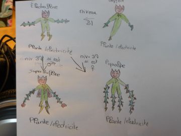 En haut à gauche, il y a trior qui évolue au niveau 37 en trioaile si il est mâle ou en trioette si il est femelle.