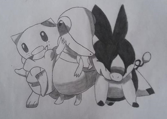 Bah c'est simple, cette fois j'ai fait les starters de la deuxième génération ^^ Le Kaïminus est assez bien réussit je trouve, Héricendre est assez bien, mais je crois que Germignon aurai eu besoins d'être retravailler un peu ^^'