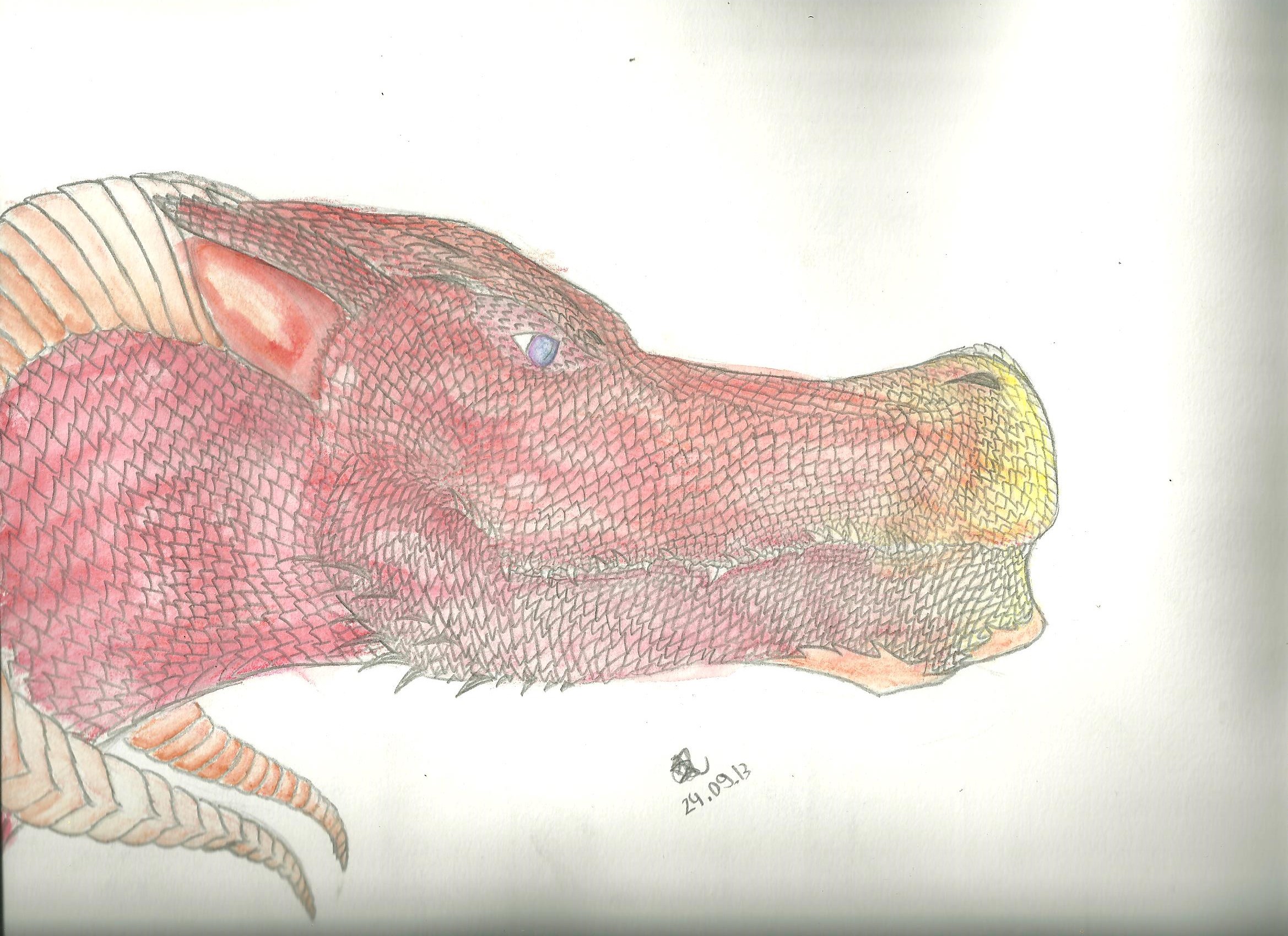 Voici maintenant un portrait de dragon chromatique rouge fait à l'aquarelle (oui car je pense me lancer dans la réalisation de portrait de dragon à l'aquarelle).