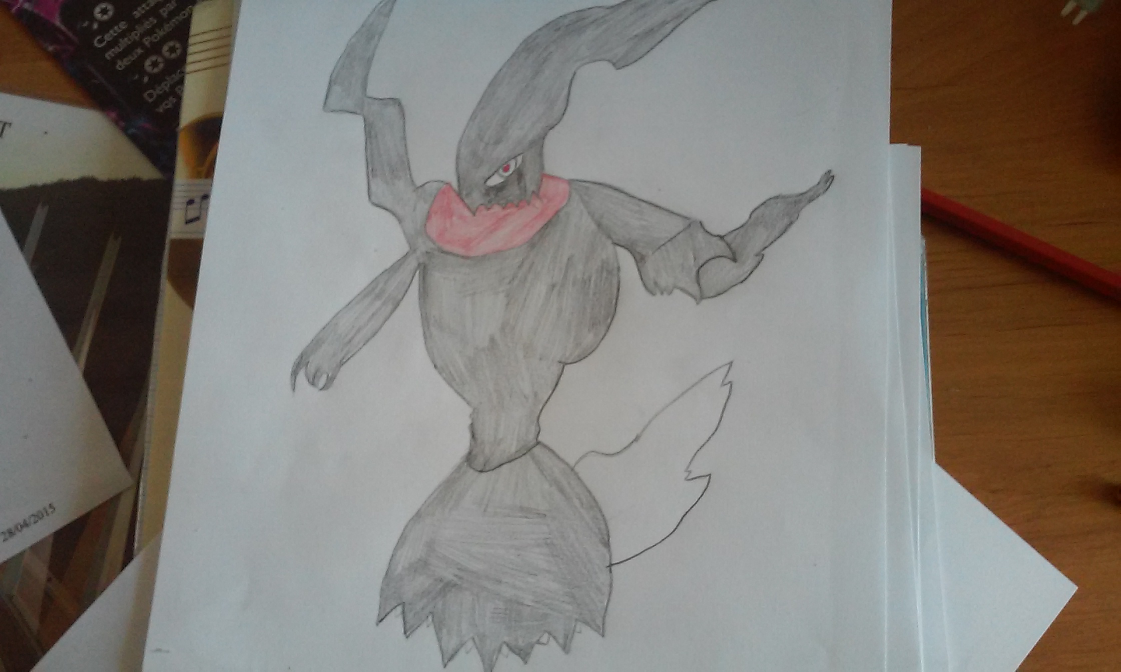 Bon voila mon nouveau dessins , commençait ce matin , à la base , il n y devait pas avoir de giratina , mais c'est mieux que que du noir ou aucun décor ^^
