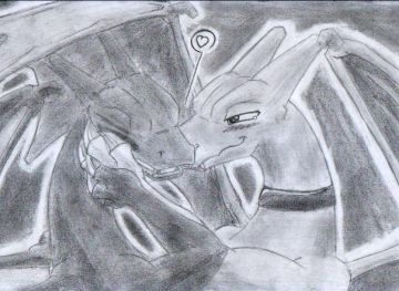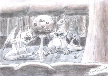 Un dessin inspiré par mes dernière aventure sur mon Blogs avec Mélo. Deux Dracaufeu en colère (yeux rouge) et celui qui fait le lien entre les deux (moi, ayant réussi à les calmés...)
