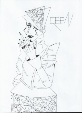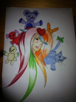 Dessin fait pour une amie :) Je me suis inspirée, en autre, des frasques de Lady Gaga. Elle est en effet connue pour ses tenues mélangeant sous-vêtements, religions, cheveux improbables(Roses, blond-noir, turquoise, rouge, violets et bleus) et autres choses improbables. Ici, j'ai choisi la religion et les cheveux turquoise. J'espère que ça vous plaira. PS: Il date du mois de mars.