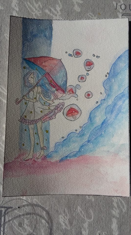 Cette aquarelle met en scène un peintre peignant une princesse à sa façon.