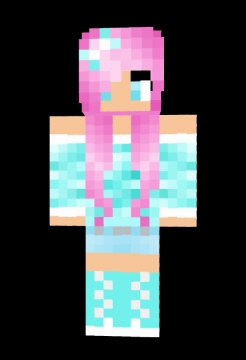Une jolie fille aux cheveux roses et aux habits bleus qui lui donnent l'impression de gentillesse.