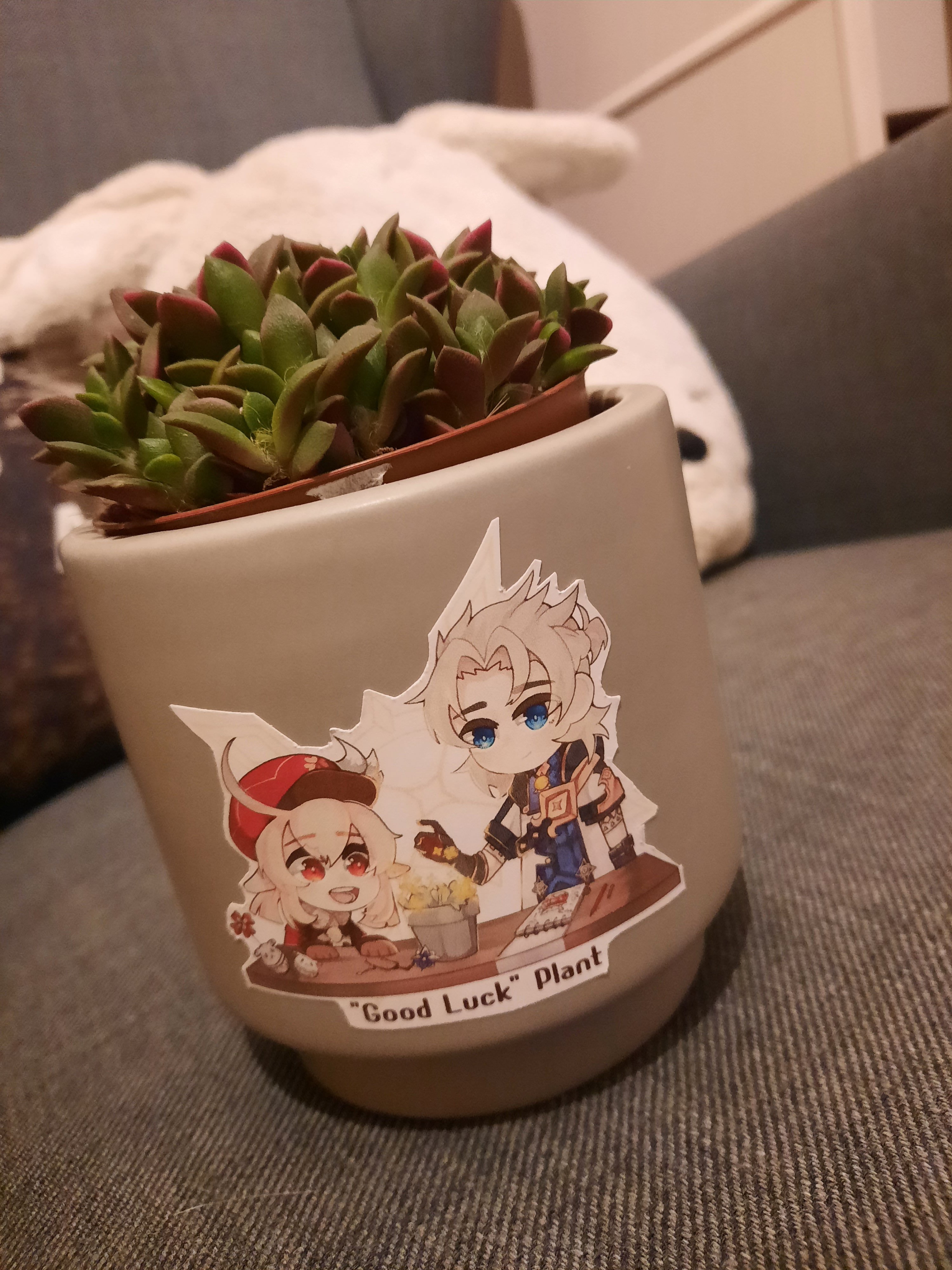 Voir l'image en grandSticker réalisé pour décoré une plante offerte à une pote pour Noël. Encore une fois, des délais très court, et les yeux d'Albedo m'ont donné envie de mourir, mais quand même contente du résultat, puis c'est mignon ig ?