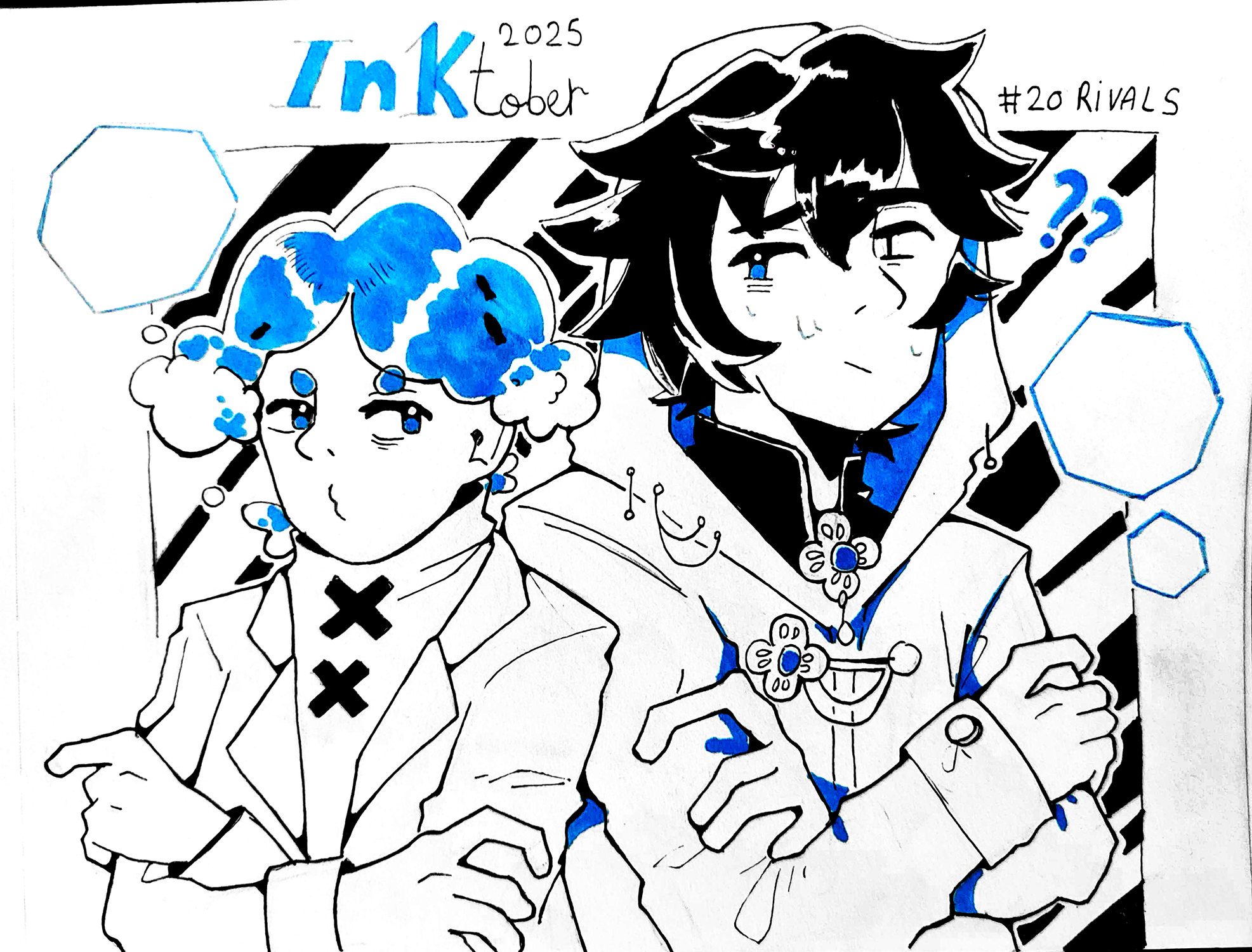 Allez, je me lance, cette année je refais l'inktober et je le finis, promis. Pour me motiver j'en ai fait un OCtober, donc je ne suivrai pas les thèmes officiels mais plutôt une liste d'OCs que j'ai construite avec mes propres OCs ainsi que des OCs de mes amis. Je vais essayer de poster semaine par semaine pour ne pas étouffer la page d'accueil des galeries et rendre les articles plus lisibles. Je n'ai pas fait de dessin au tradi depuis mon dernier Inktober (2021 ? 2022 ? Je ne sais plus vraiment) donc c'est un peu une redécouverte du medium pour moi.