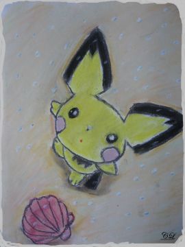 Réalisé au crayon, puis colorié au pastel sec. Il s'agit d'une illustration de la fiction de Nelio "Le Soleil, la plage, la neige et les cocotiers" présentée au concours de Noël. La signature étant hors du cadrage de la photo, je l'ai rajoutée avec Paint.