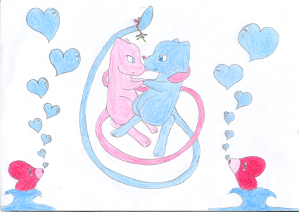 Que c'est mimi!!! Deux petits Mew (meme si ça peut pas exister)! Parfait pour couverture d'une carte de Saint Valentin! (donner des commentaires)