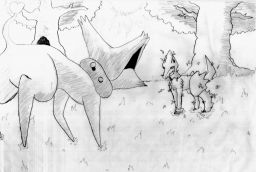 Un evoli qui a evoluer en mentali(sans faire expres)et qui est rejeté par son clan de noctali dirigé par un noctali shiney représenté en haut à droite. Là, on peut voir le mentali en train de courir et éclaté en sanglots.