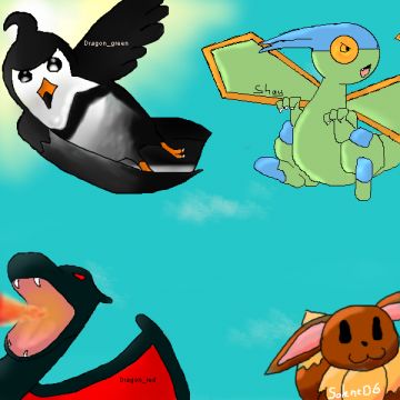 oekaki a 4, moi j'ai fait le dragon rouge et le fond, les autres y ont