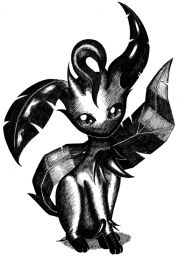 Un dessin de Phyllali, toujours réalisé à l'aide de la même technique, à savoir au feutre 0,5 sur format A4. Je le trouve peut-être un poil trop sombre, d'autant plus qu'en réalité, il est shiney ^^ (des heures et des heures à fouiller au jardin trophée ;) )