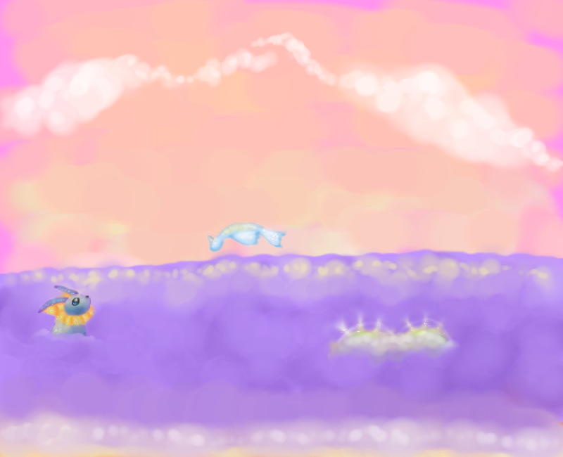 Voilà c'était un test que j'avais fait pour m'essayer un peu à l'eau et aux projections. C'est pas magnifique mais je l'aime bien quand même; IL a été fait sur chibi paint en environ 1h50.