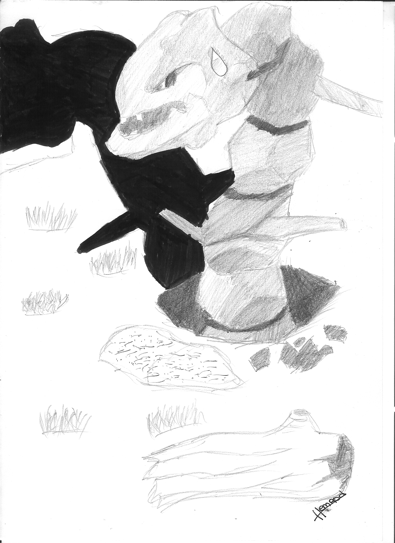 Fait en 45min au crayon, et du feutre pour l ombre, dailleur, jai du forcer pour finir l ombre, mon noir a rendu l ame