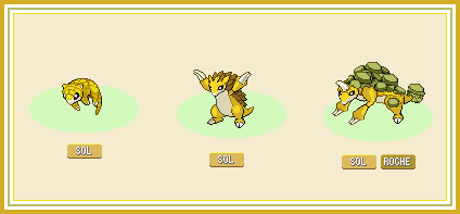 A l'aide de la roche de Grasyl , sablaireau peut évoluer ,gagnant le type roche. On le trouve dans les endroits arides ensablés laissant juste dépasser les rochers de son dos. On le prend souvent pour des rochers composants le paysage.