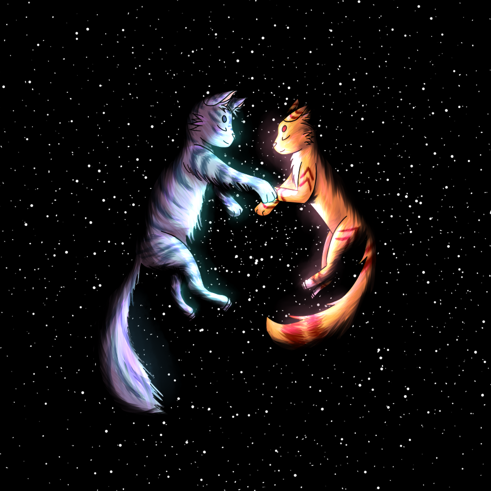 sœurs, anciennes chattes domestiques séparées, elles se retrouvent par "hasard" au sein des clans, Pierre de Lune intégrant le Clan du Vent